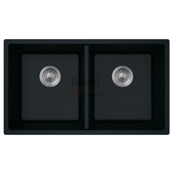 Undermount granite double bowl sink 80% Granite Content 3 1/2" drain opening Supplied with installation clips, template & strainers CUPC certified